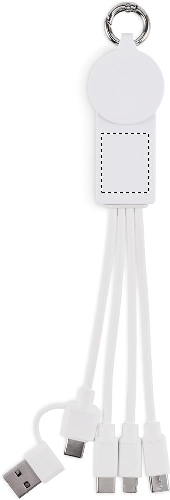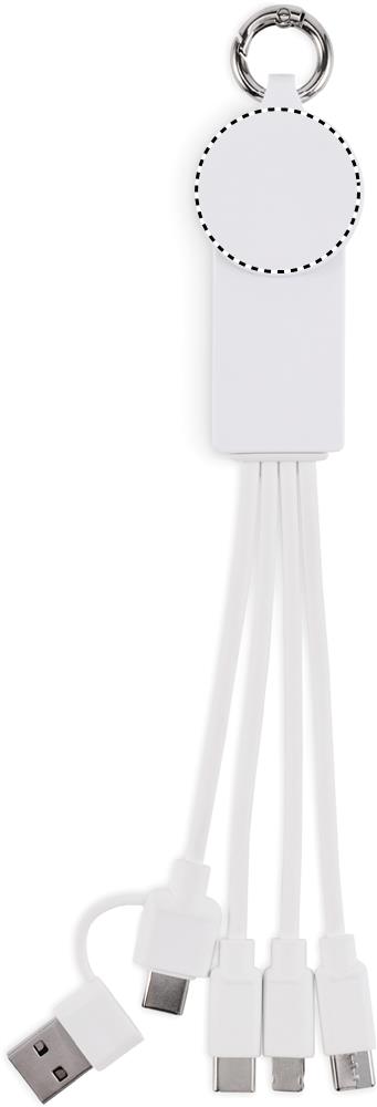 Schlüsselring mit Ladekabel. Eingang: 2-in-1 Typ-C & Typ-A. Ausgang: Aufladen der Uhr (Samsung® und Apple®), 2 x Typ-C und Micro-B (2 in 1 Pin). Kabel aus recyceltem TPE.
